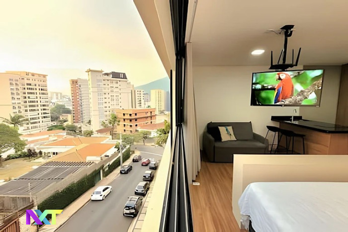 Apê excepcional para relaxar e curtir tudo que há de melhor em Poços. Seja algumas noites ou por meses, nosso studio é o ideal. Prédio na área central da cidade, perto de tudo, com portaria 24h, elevador, piscina, academia, terraço, área gourmet, lavanderia, vista linda, todo mobiliado e equipado, muito funcional e confortável. Self check-in fácil, internet ótima, ar condicionado SmarTV 4K, kit para café, além de vaga coberta de garagem. Fornecemos toalha, roupa de cama e coberta