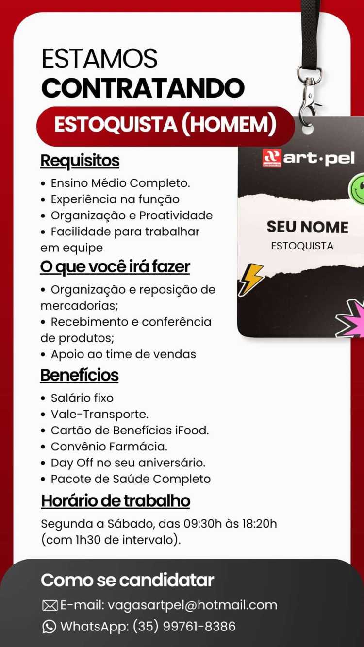 Art Pel está Contratando Estoquista (Homem) em Poços de Caldas!
