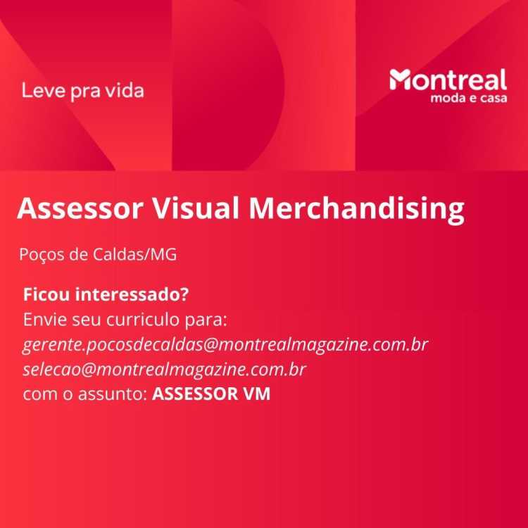- Como Candidatar-se: Envie seu currículo para gerente.pocosdecaldas@montrealmagazine.com.br ou selecao@montrealmagazine.com.br.