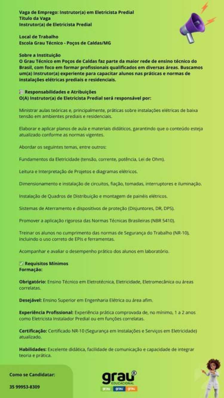 - Como Candidatar-se: Envie currículo pelo (35) 99953-8309.