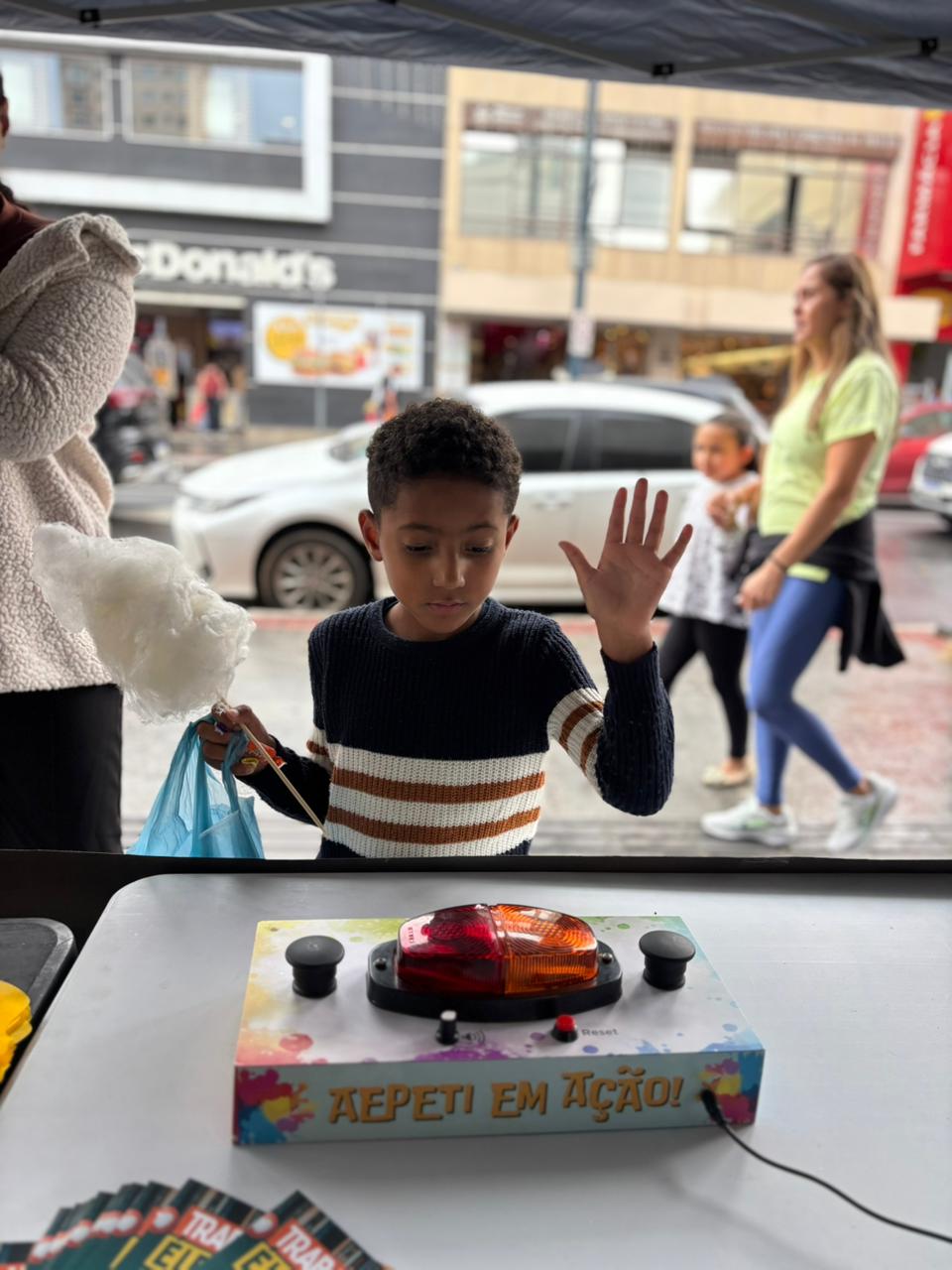 Além da distribuição de panfletos, materiais informativos e brindes e da realização de atividades interativas, a blitz contou com a presença do Papai Noel do AEPETI para chamar a atenção das crianças e contribuir para a conscientização sobre a importância de uma infância e adolescência protegida.